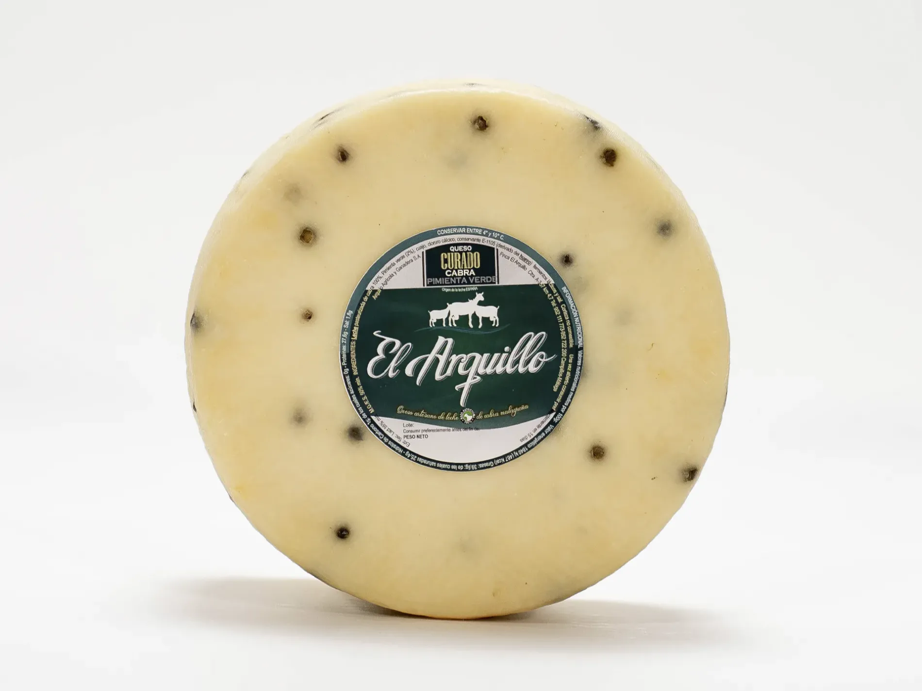 Queso puro de cabra curado a la pimienta verde